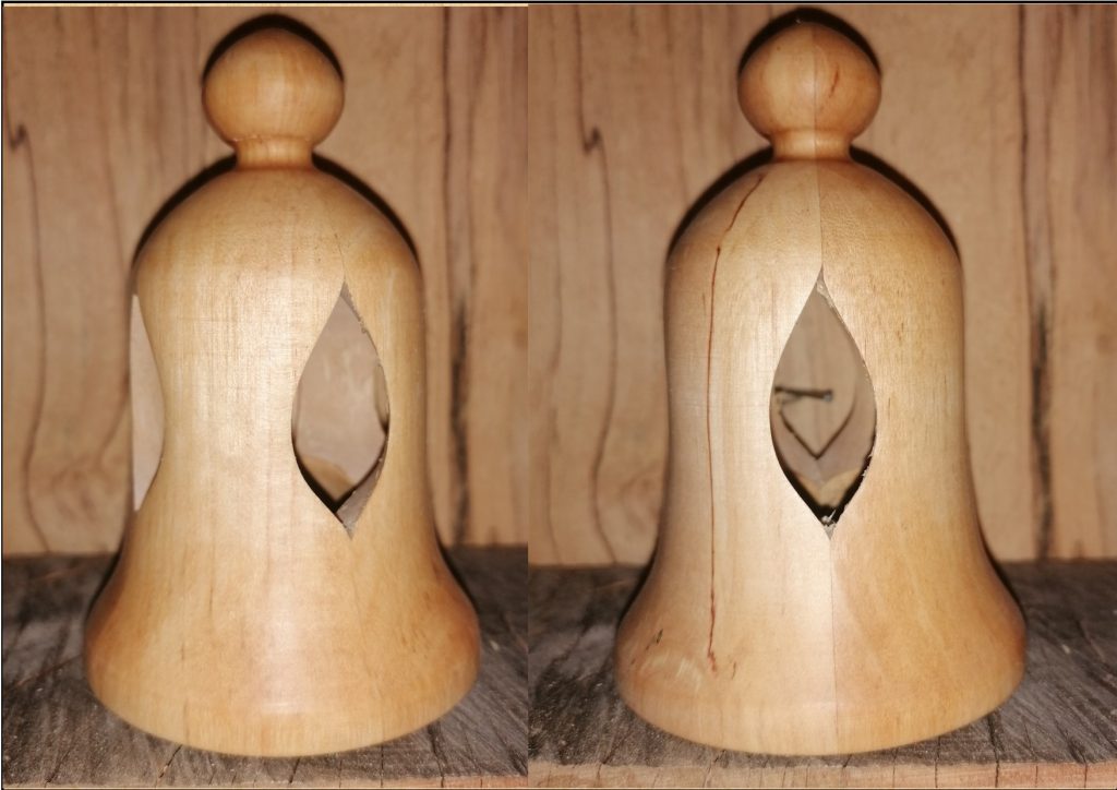 Handgefertigt aus regionaler Birke und mit Bienenwachs poliert. Die Glocken mit ca. Ø 7cm /h10cm sind der Farbgruppe 1 und 2 zugeordnet. Geeignet für Innen- und geschützten Außenbereich