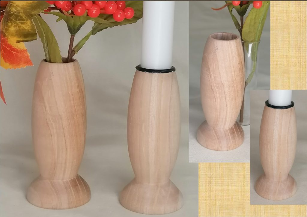 Handgedrechselter Kerzenhalter oder Blumenvase aus heimischer Esche mit Bienenwachs poliert. Ø48mm 110mm hoch für 22mm Stabkerzen / 30mm Glaseinsatz