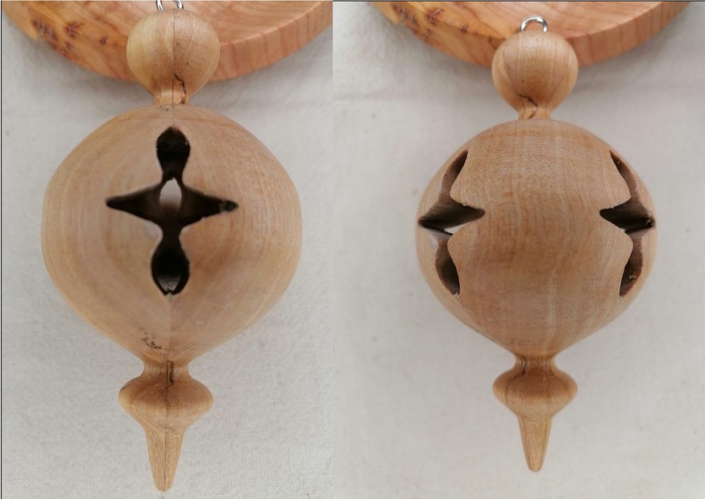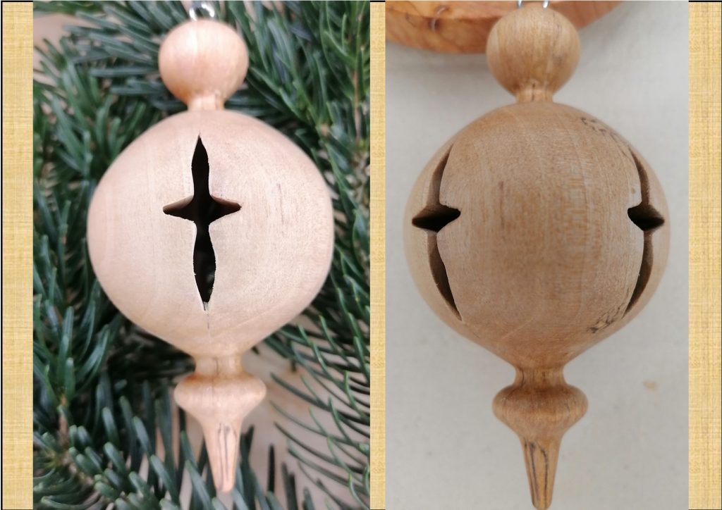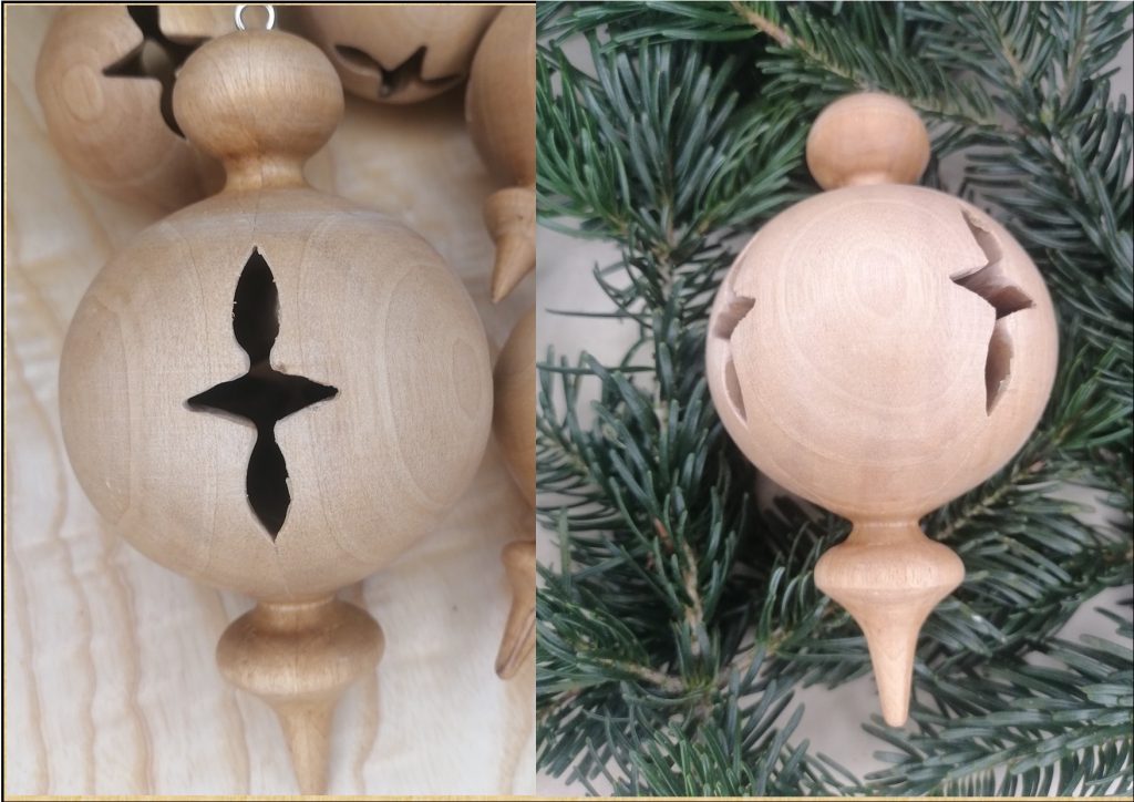 Handgefertigt aus regionaler Birke und mit Bienenwachs poliert. Die Schmuckkugel mit ca. Ø 5cm /h10cm sind der Farbgruppe 1 und 2 zugeordnet. Geeignet für Innen- und geschützten Außenbereich