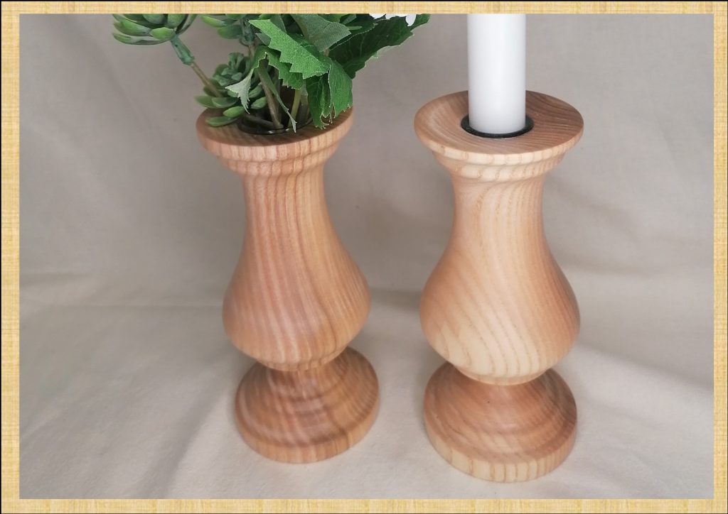 Handgedrechselter Kerzenhalter oder Blumenvase aus heimischer Esche mit Bienenwachs poliert. Ø65mm 155mm hoch für 22mm Stabkerzen / 30mm Glaseinsatz
