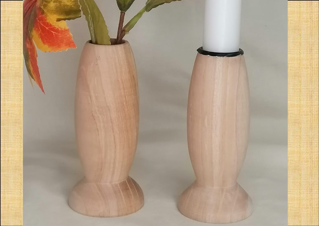 Handgedrechselter Kerzenhalter oder Blumenvase aus heimischer Esche mit Bienenwachs poliert. Ø48mm 110mm hoch für 22mm Stabkerzen / 30mm Glaseinsatz