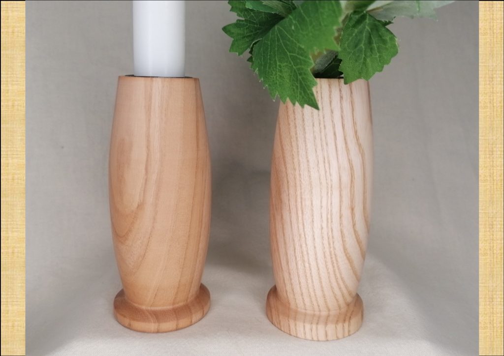 Handgedrechselter Kerzenhalter oder Blumenvase aus heimischer Esche mit Bienenwachs poliert. Ø48mm 100mm hoch für 22mm Stabkerzen / 20mm Glaseinsatz