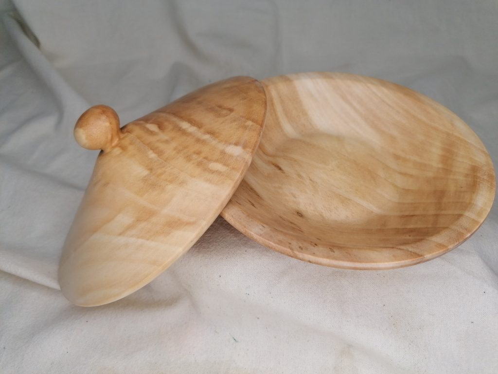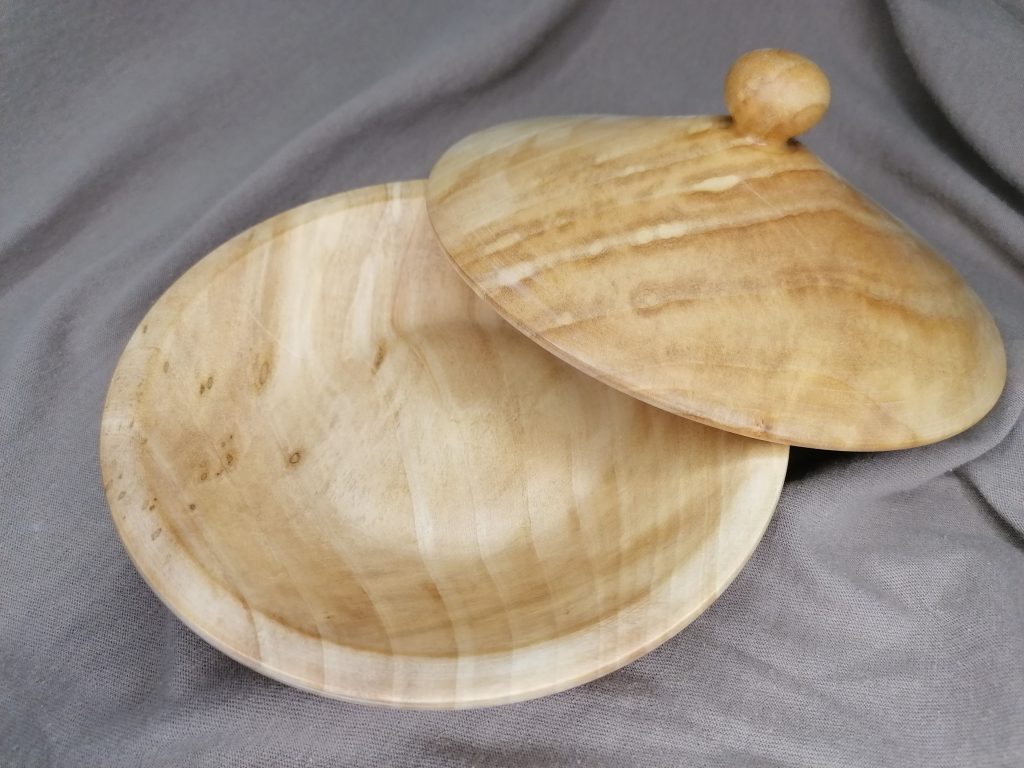 D06 Schmuckdose Ø 15,5 x 7,5 Linde mit Bienenwachs poliert 16,00€ (zuzüglich DHL-Versand ohne Deko)