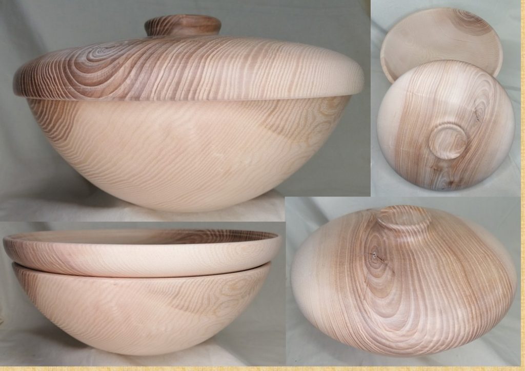 D08 Holzdose Knabberdose Bonboniere handgedrechselt, Ø 26 x 21 cm, Esche mit Mohnöl