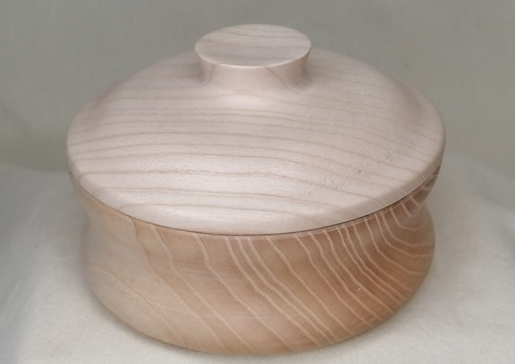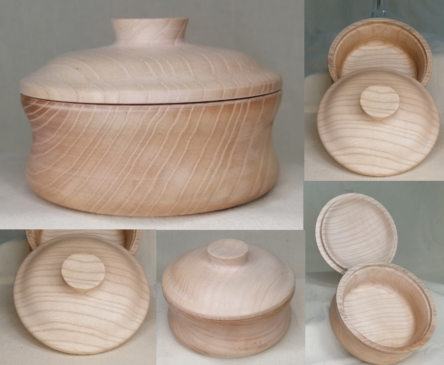D12 Holzdose Zuckerdose Bonboniere handgedrechselt aus heimischer Esche ,Oberfläche natur poliert (Lebensmittelecht) Ø11,5 x 7,5cm