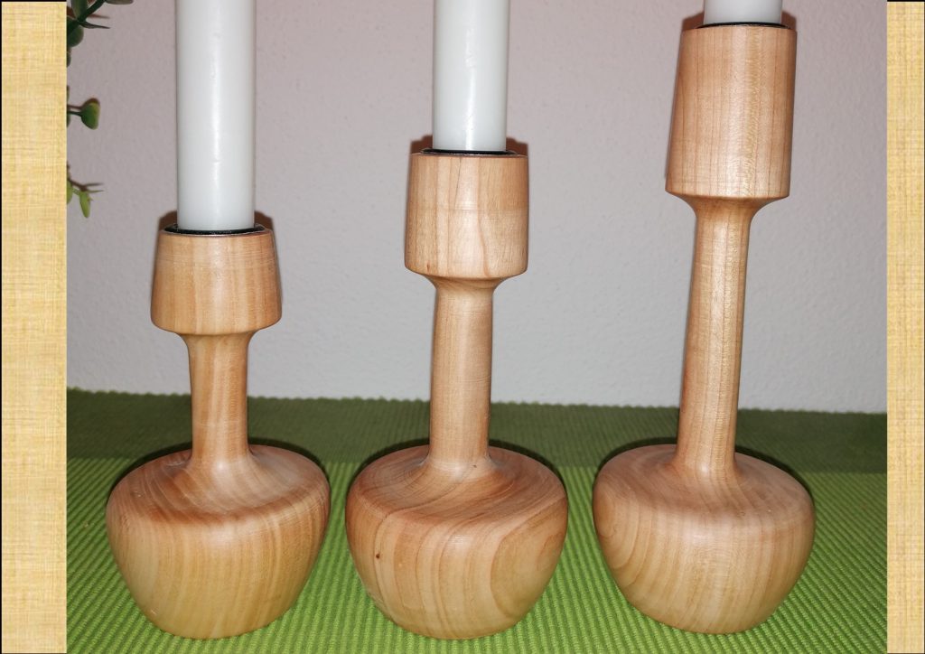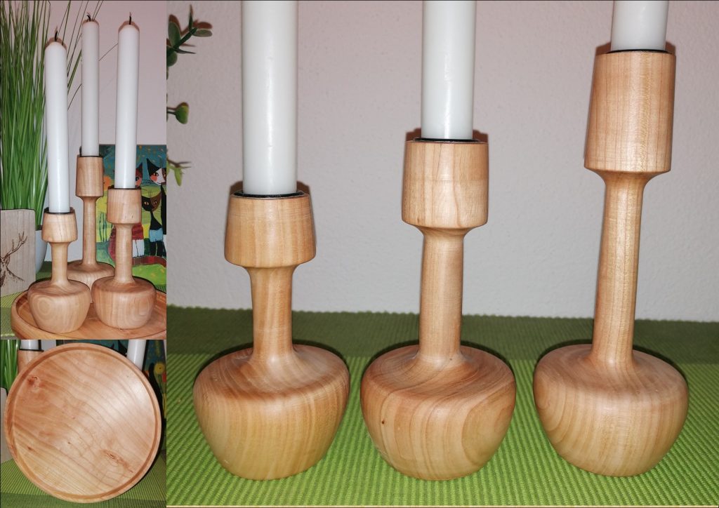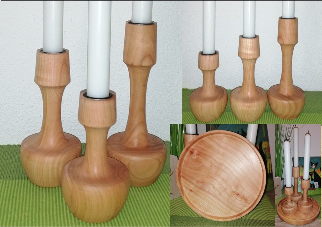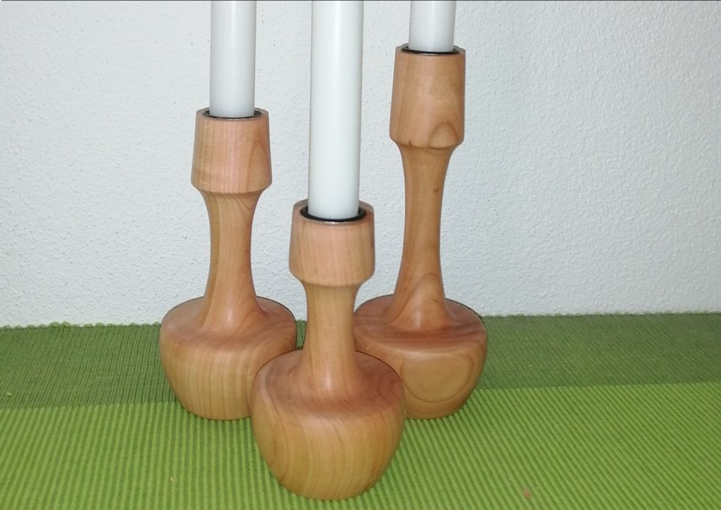 KS06  Kerzenständer 3er Set aus Wildkirsche mit Bienenwachs poliert