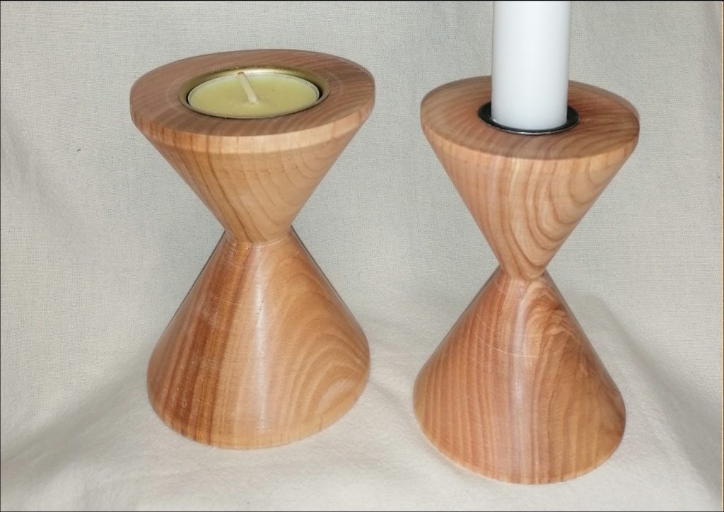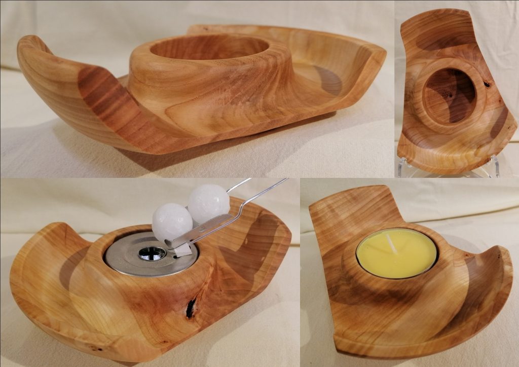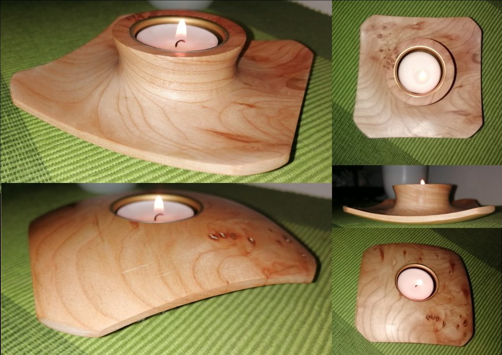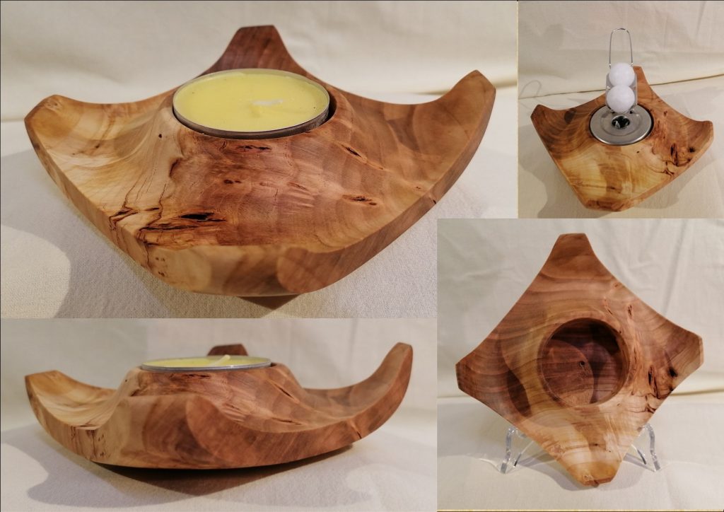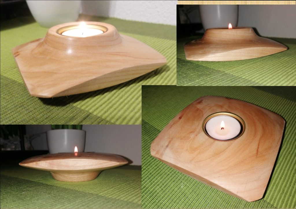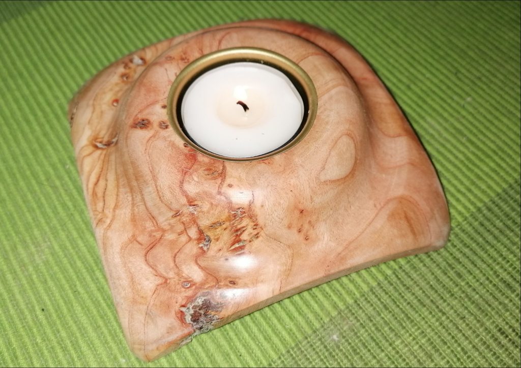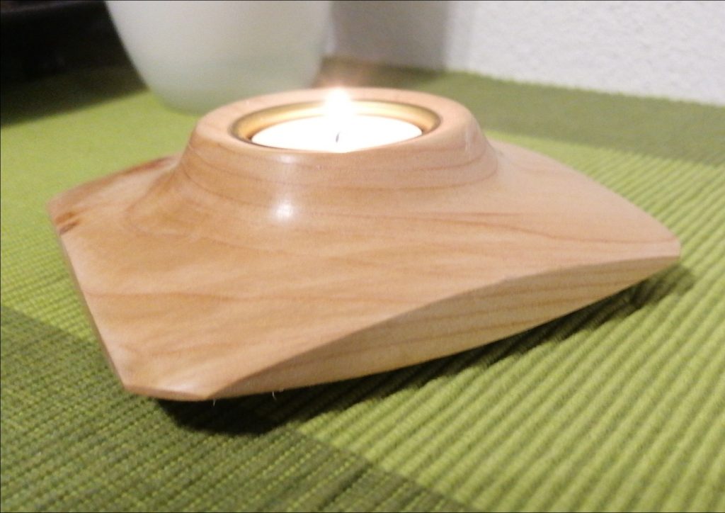 T02 2-seitiger Teelicht-Halter, dieses Unikat ist aus Kirschbaum und mit Bienenwachs poliert