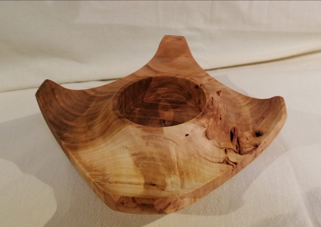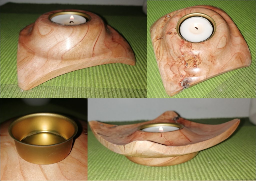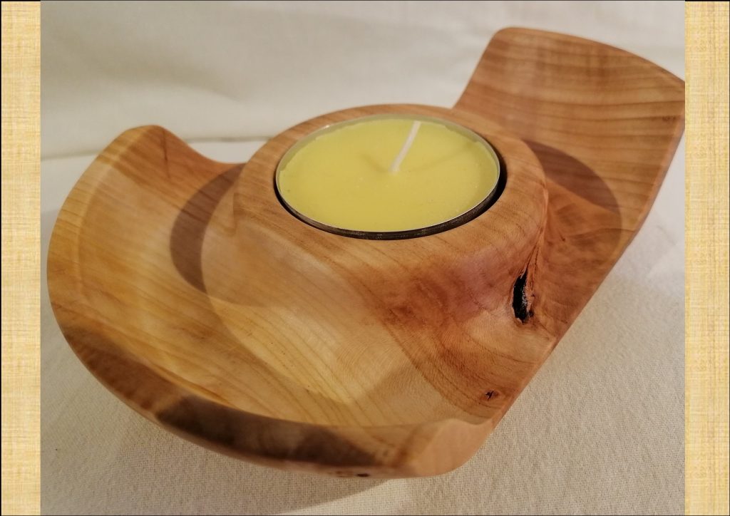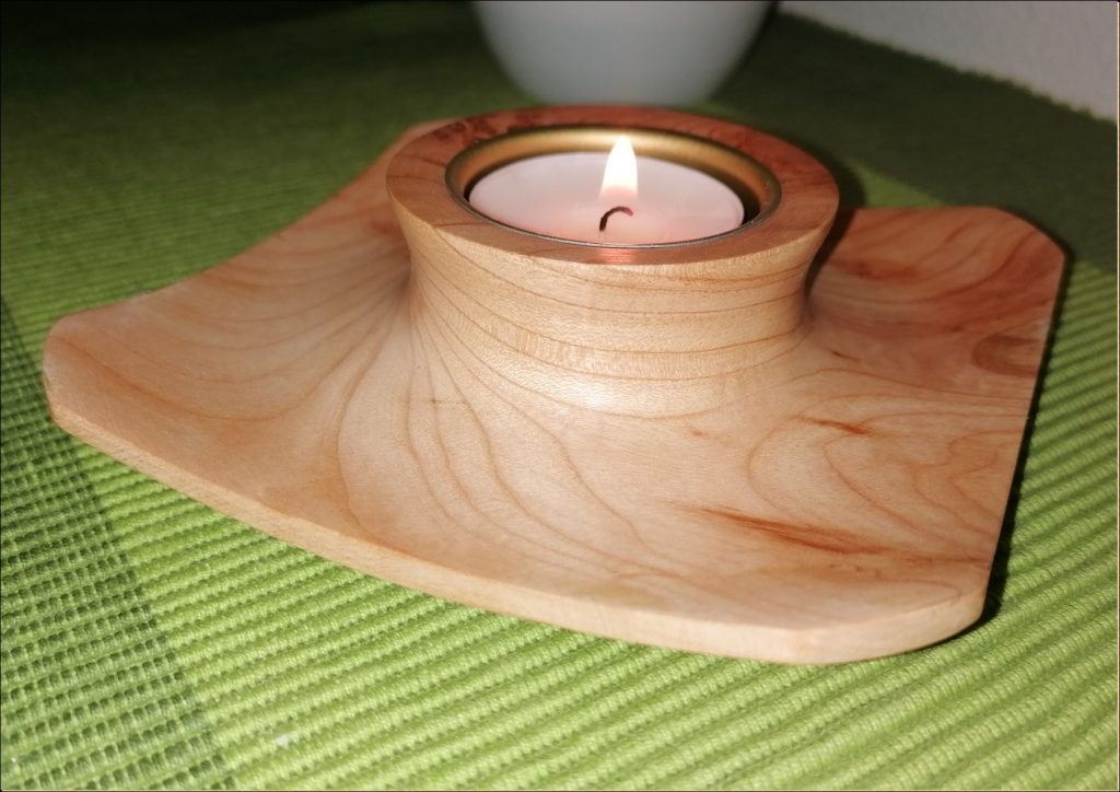 T09 2-seitiger Teelicht-Halter, dieses Unikat ist aus Kirschbaum und mit Bienenwachs poliert